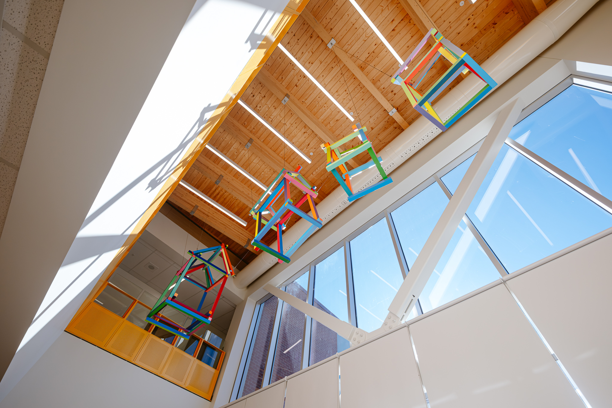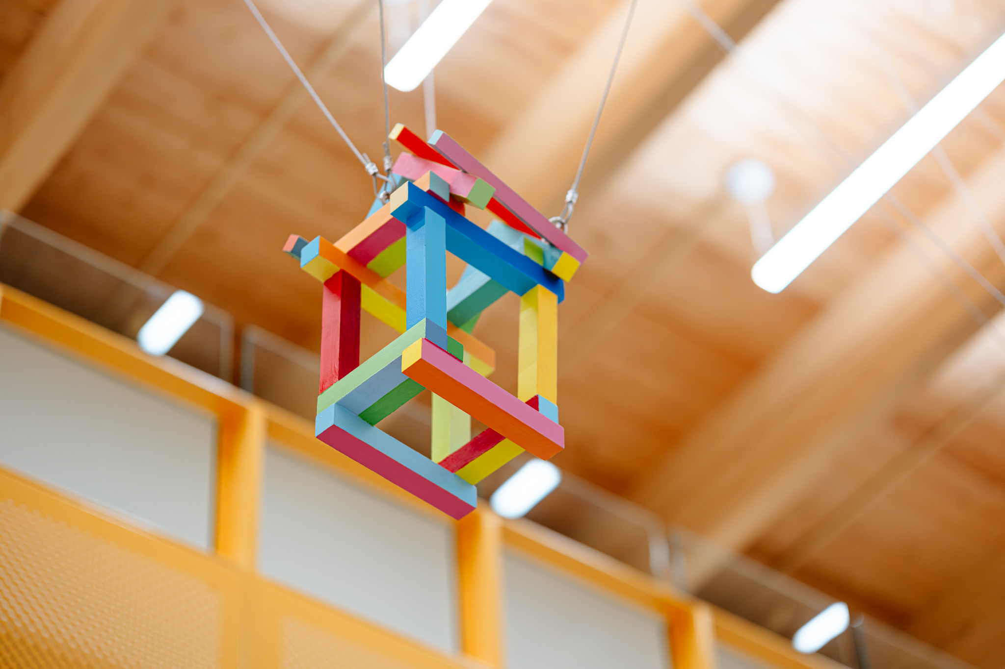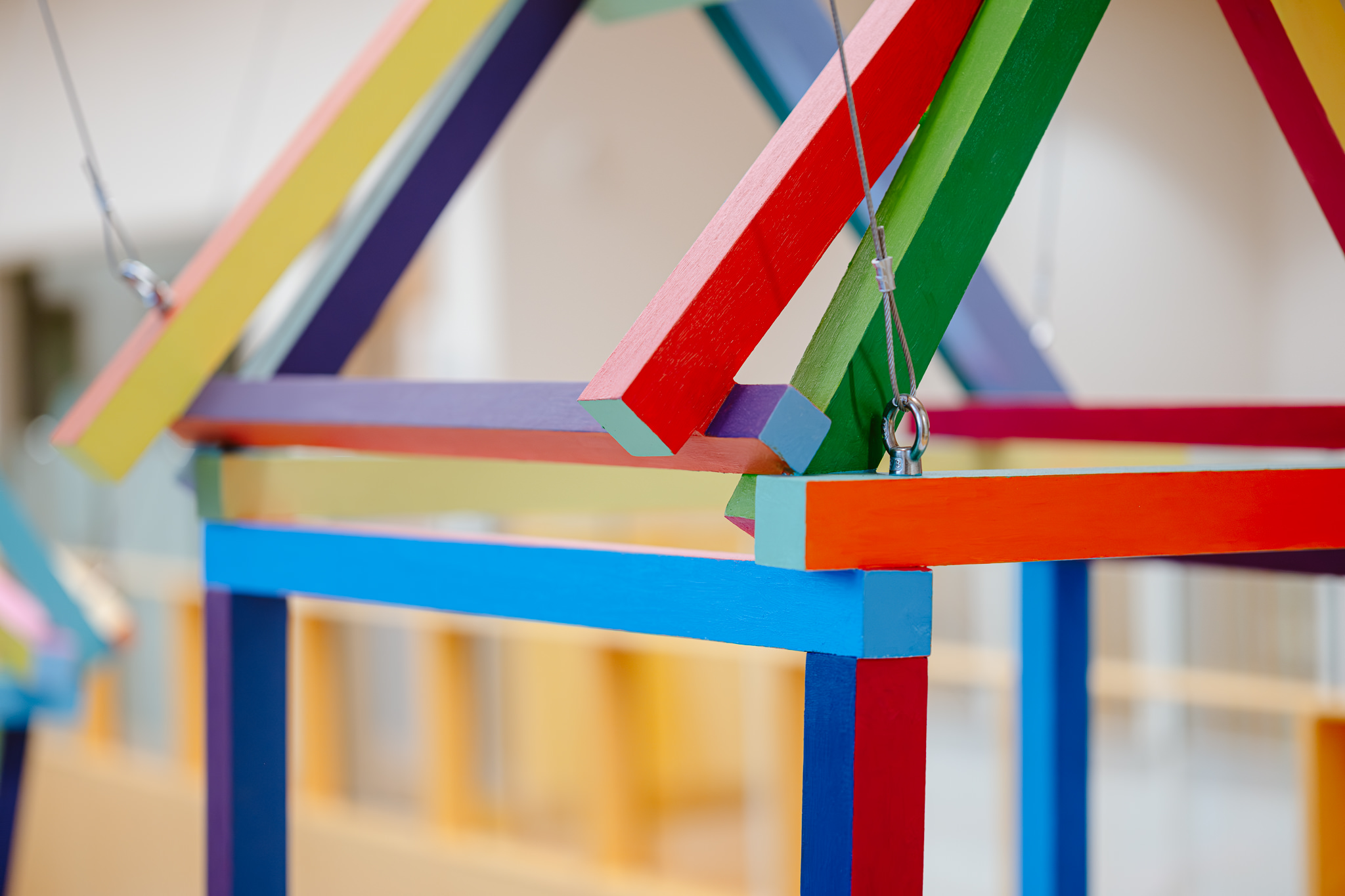 Ces volumes architecturaux simples reflètent le rôle essentiel des écoles en tant que deuxième foyer pour les enfants. Symboles de protection et de sécurité, les maisons abritent métaphoriquement les activités de développement des connaissances. Elles protègent le savoir, qui agit comme un bouclier permettant aux apprenants de s’élever.